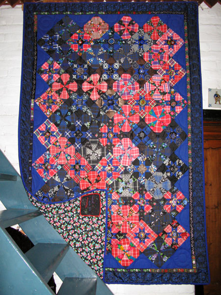 Jan was ook erg enthousiast over het aardewerk dat gemaakt is door Geo Hultink van de Klosse. Het wordt gedraaid in een hoek van de huiskamer van Rosa en Geo en daarna naar Frankrijk gebracht om te bakken. Rosa maakt trouwens ook prachtige quilts. Op de foto een quilt gemaakt van originele stoffen (stipwerk) uit Staphorst.