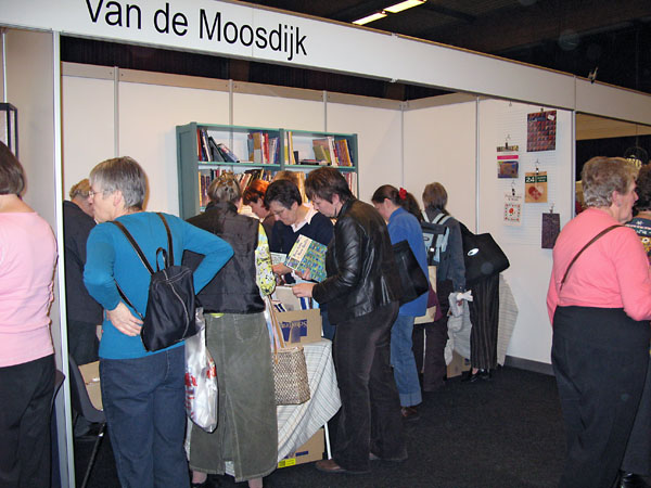 Afgelopen zondag en maandag heb ik vanuit Stitch ‘n Bitch Utrecht gebreid in het breicafé dat speciaal voor de gelegenheid was opgebouwd op de Vakbeurs in Arnhem. Gezellige dagen, vooral toen ook nog een aantal andere bekenden opdoken. Van SnB Venlo waren er Berthi, dé deskundige op het gebied van oude textiel en handwerken in Nederland en Marnel die mij met raad en daad bijstaat bij het runnen van de Sampler M-groep. En uit SnB Tilburg kwam José die de succesvolle workshop Grolse wanten gaf op de Stitch ‘n Bitch-Dag. Het werd weer als vanouds gezellig!