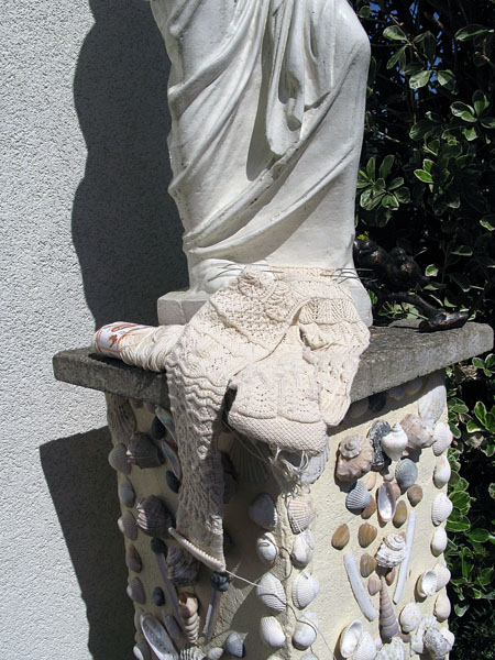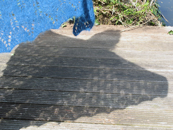Well, it is too nice weather to blog right now, but I want to show off my new wimple, here showed on a bit too small head. The pattern can be found in Knitting in America, but I made it a little longer.