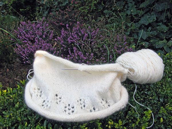 To have to knit something for the coming months I decided to take a very difficult pattern for a shawl and to knit it with super thin yarn and needles of 1,5 mm. It is a triagle mixed with a rectangle shawl from Gathering of Lace. I hope to finish it this winter, so I will keep you updated on the progress. Probably a lot of nagging about the thinness of the yarn and the complixity of the pattern too, but I promise to try to minimize that…….