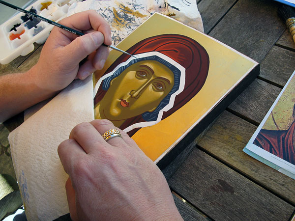 And while the sun is shining husband Jan paints his sixth icon in the garden zesde icoon. Soon a few of his icons will be in the Nicolaikerk in Utrecht for an exposition.