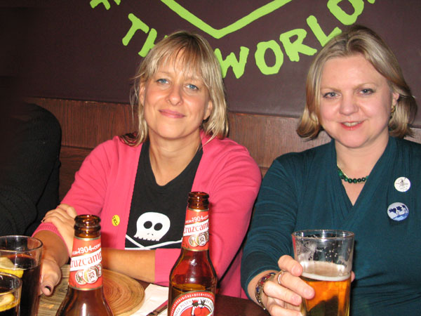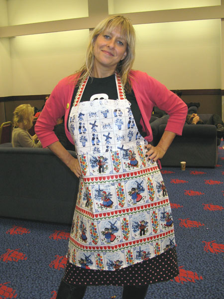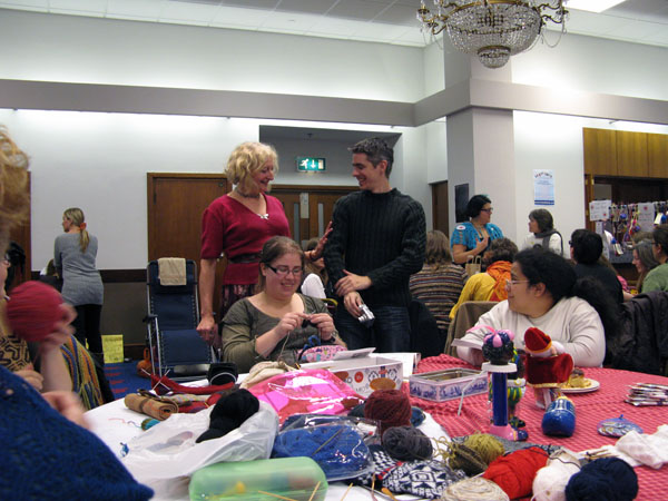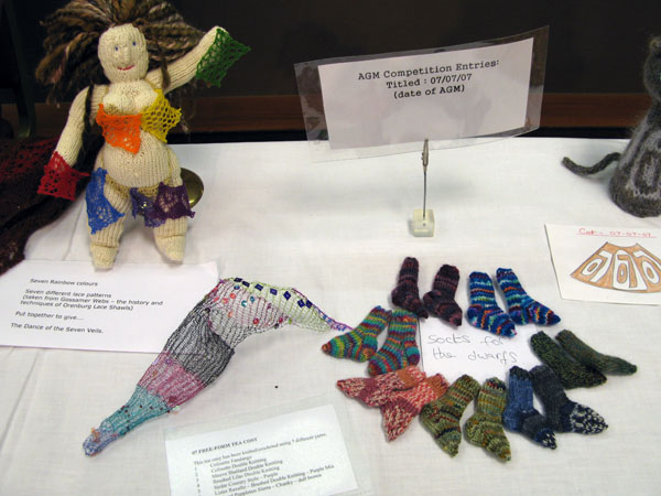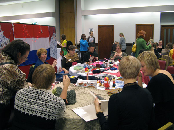 What a day yesterday! I have heard from many of you that you had a great time. Thanks again for all the compliments for the organization and for the MondNacht. That did me so much good after a period of hard work and knitting for the Day. It was great that a number of you filled this suddenly created ‘gap’ for the organization by offering an extra helping hand or by giving Janet and me a pat on the back. Or by spontaneously giving me a big hug. It was so nice to see you all again, we have so many friends in the knitting world… thank you! Also thanks to our knitting VIPs who made such a great contribution to the Day through their enthusiasm and dedication. Dear Jean and Philips, Debbie, Kerstin and Nancy, we will keep in touch! Now first clean up the mess here, look at the photos, pick up my Swedish guest and review everything again. More later…