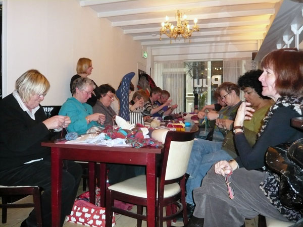 With a last hug we said goodbye. Lisa knitted on the socks for Brent, one was finished and given to him, one was still on the needles and will be send lateron. Julia gave Brent her angora hat she just finished. Marianne made him a wonderful Sinterklaas poem and the Winkel van Sinkel trembled when we yelled Ozzi-Ozzi-Ozzi as a last goodbye from his knitting friends! With some pocket money to buy something knit related we let him go. We just don’t believe his statement that he will stop knitting in Australia. Anyway, we will see Brent again, thanks to his two way ticket that will bring him back to the Netherlands in July. Dear Brent, I’m already looking forward to it…… same place, same time and don’t you dear leave your knitting needles home!