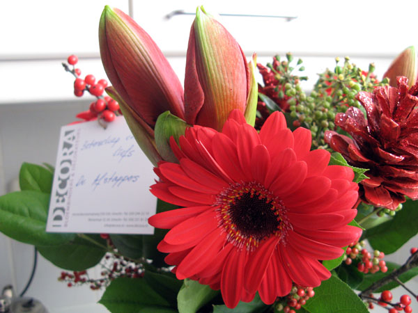 Yak, I’m sick…… a bronchitis and some related ailments yesterday prevented me from giving the workshop Estonian Knitting Techniques at De Afstap in Amsterdam. Such a disappoinment! We have so many nice items for this workshop, so we find it very disappointing to have to cancel it. The Afstapper’s thought this was a good reason for a cheeerful bunch of Christmas flowers that made me feel better right away. Thanks for a pleasant surprise on just the right moment.