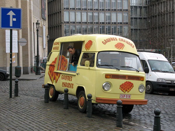 Brussel was gezellig en levendig, maar ons tempo lag laag ivm alle lichamelijke beperkingen, dus we hebben geen wol- of quiltwinkels bezocht. Wel viel Cos, de Scandinavische kledingzaak die we ook al in New York en Londen hadden bezocht, erg in de smaak bij de dames. De gele busjes met warme gaufres (wafels) stonden op iedere hoek van de straat. Bonbonwinkeltjes met etalages vol heerlijkheden. Overal winkels met het mooiste kant. De kerstmarkten waren overladen met troep, maar wel gezellig. De Brusselse bevolking neemt het niet te nauw met de goede smaak dus overal zag je kerstmannetjespoppen aan de huizen hangen. Op de grote markt gaf een lichtorgel en bijzondere muziek de kitcherigste sfeer die je je kan voorstellen, gewéldig! Barretjes en restaurantjes in, genieten van de luxe en stijl van het hotel, samen lekker eten, drinken, tutten en lachen, dat was genoeg om weer tevreden en voldaan huiswaarts te gaan.