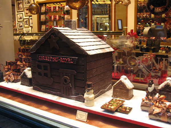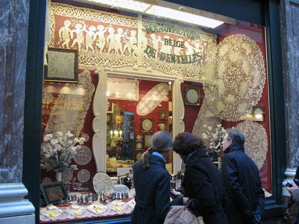 Brussels was cosy and very much alife, but our tempo was low as we had lots of fysical limitations, so we didn’t make it to wool- and quiltshops. But we all loved Cos, the Scandinavian store that we already visited in New York and London. The small yellow busses from which the warm gaufres (waffels) were sold, were parked in all the streets. Bonbon shops with window displays stuffed with goodies. Everywhere shops with beautiful lace. The Christmas markets only sold rubbish, but added to the good atmosphere in the old town. The inhabitants of Brussels seemed to like kitschy stuff, so everywhere Santa dolls where hanging from the fronts of the houses. On the big market place a light organ and special music made it even more kitschy. Great! We hopped into bars and restaurants, enjoyed the luxe and style of the hotel, eat, drunk, laughed etc together, so we all returned home happy.