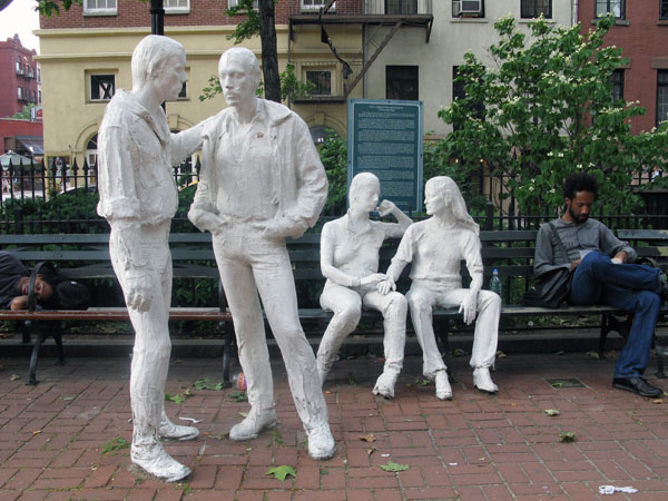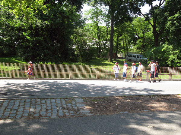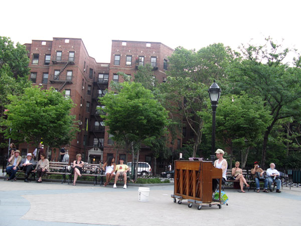 At String I found beautiful luxury yarns. Pricy, but nicely laid out in there new shop in a fancy neighbourhood in Upper East, stuffed with Mr Sheffield houses. While Jan waiting on the stairs in front of the shop, I had a good time between balls without prices on them. They did this on purpose, they told me. But I think it is to prevent that the customers get frightened. Often the prices were just a bit above prices I saw elsewhere. I cuddled all balls I liked. Even Qiviut and Koigu. But left without buying anything.