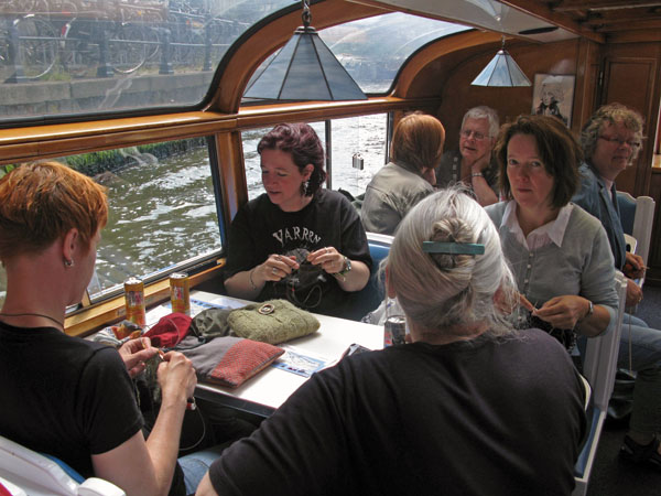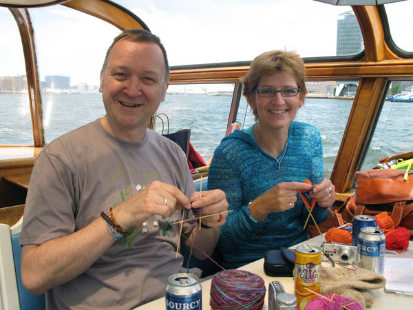The Point is gréat! Eat, knit and be happy! A combination of a yarn shop and a knitting cafe. Stuffed with chatting knitters. There is a bar where you can order drinks and homemade cakes. Jan feel a bit misplaced on his table with a silent knitter, but I had a wonderful time. I found some transparent knitting cases and a bag with the logo of The Point and a skein of 1200 yard alpaca in roses red. And two HiyaHiya sock circulars made of bamboo and only 23 cm long. Why don’t we have that in the Netherlands?