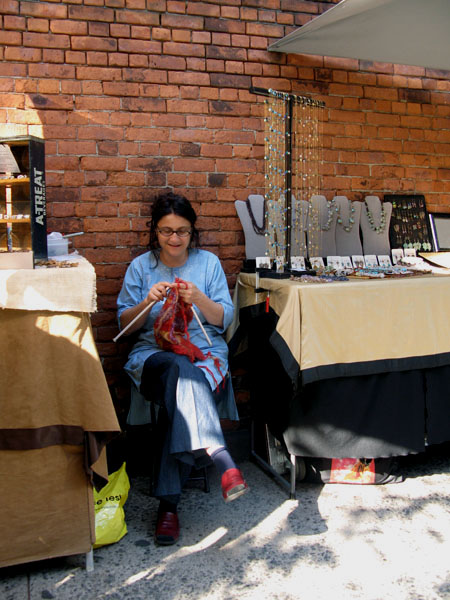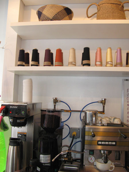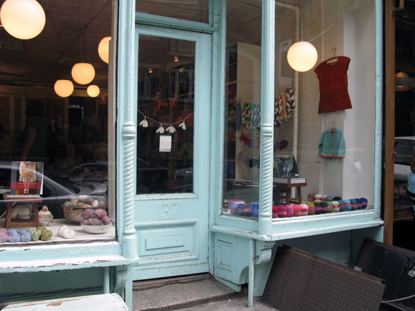 Purl SoHo wordt geleid door Joelle Hoverson die echter meer geïnteresseerd is in haar eigen breiwerkje dan in de klanten in de winkel. Jammer hoor, want er lagen wel veel mooie natuurlijke garens in prachtige kleuren. En ze breien er nog proeflapjes zodat klanten de kwaliteit van het gebreide weefsel kunnen zien en voelen.