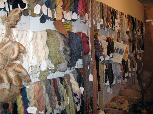 Bij String vond ik prachtige luxe garens. Wel aan de prijs, maar mooi geëtaleerd in hun nieuwe winkel in de deftige buurt Upper East vol met Mr Sheffield-huizen. Terwijl Jan op het trappetje buiten zat, leefde ik me uit tussen de ongeprijsde bolletjes. Dat doen ze expres, want de prijzen veranderden te vaak, vertelden ze. Maar ik denk dat het was om de klanten niet te laten schrikken. Vaak lagen de prijzen ook nét iets boven wat ik elders had gezien. Ik heb het allemaal in mijn handen gehad. Eindelijk knuffelde ik echte Qiviut en Koigu. Maar ik ging hier met lege handen weg.