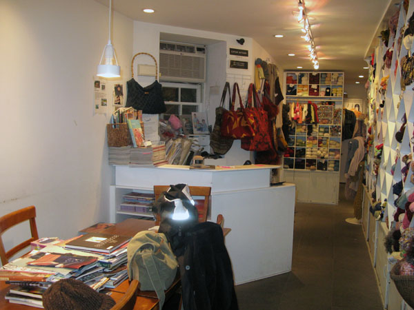 Schoolproducts, de oudste wolwinkel van New York, is een zalig ouderwetse en enigszins rommelige winkel verstopt op de tweede etage van een hoog gebouw. De eigenares Berta Karapetyan is de oprichtster van Karabella Yarns. Er is duidelijk een inkoopbeleid met oog voor kwaliteit in combinatie met een redelijke prijs, dus veel cashmere op coons, strengen zijde in diverse kwaliteiten (ik kocht een pond dunne glanzende zijde voor 30 dollar!) en wat duistere maar wel mooie bolletjes gemengd. Ook Koigu sokkenwol in veel tinten, waar ik wat van meenam. Meer voor de heb en omdat je Koigu hier niet ziet, want in deze kwaliteit in handgeverfd garen vind je hier ook bij Colinette en zo. Zimmermann’s Knitting Around bleek een prachtboek te zijn……
