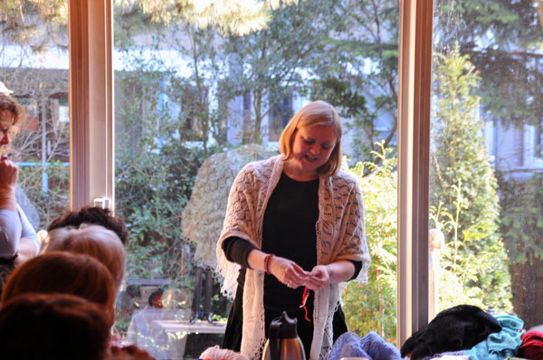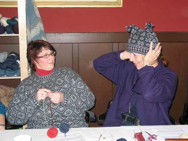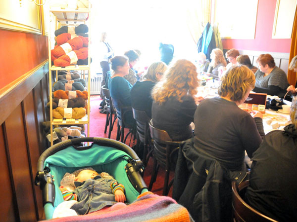 Meebreien met de breisters van L’Oisivethé was gezellig. Daar ontmoeten we ook onze Amerikaanse vriendin LouKnits en haar negenjarige dochtertje Cloé dat die dag leerde breien. Zij hielden ons gezelschap op de beurs op donderdag. LouKnits verwende Cloé met vijf knotjes KidSilk bij Habu. Cloé deed vrijwel alle rondes mee met het speedknitten en hielp fanatiek met het werven van nieuwe speedknitters. Maar daarover later meer, want er is ook nog een ondeugende Canadese speedknitter waar ik jullie over moet vertellen…….