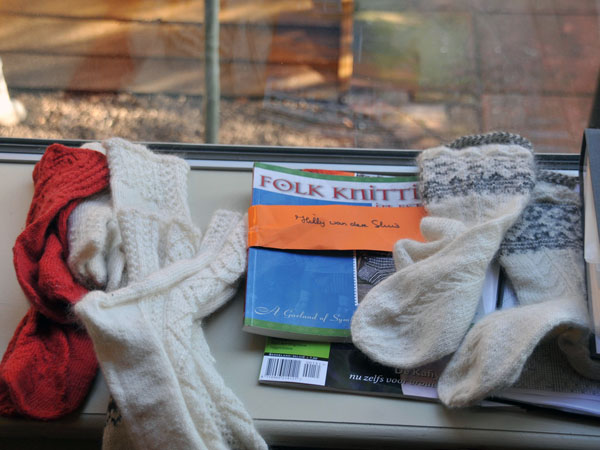 At La Droguerie on Rue du Jour I found a few skeins of beautiful alpaca. Of course we also went to Junkudo, the Japanese bookstore. This time I bought a Japanese book about knitting with beads (with lots of Estonian wristwarmers) and a book about advanced entrelac and domino knitting. And presents for Signe and Monika, our Estonian friends that buy Estonian books for us and send them to us. As we can ‘read’ Estonian, they will surely be able to ‘read’ Japanese. Thanks to Monika I even have the hard to get Elùmonu written by Kihnu Roosi, a real juwel.