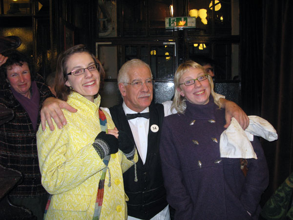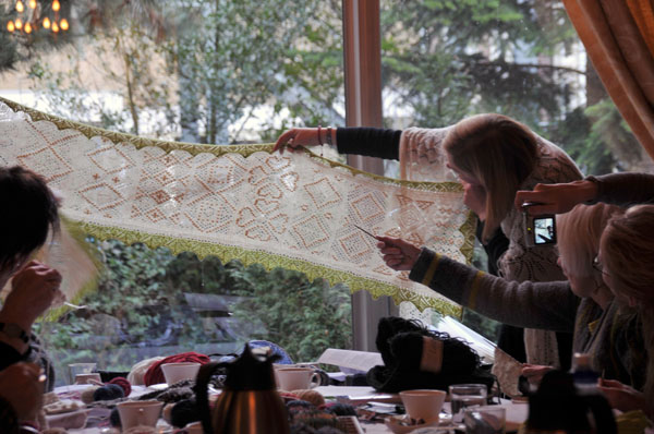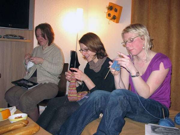Knitting along with the knitters of L’Oisivethé was nice. There we met our American friend LouKnits and her nice year old daughter Cloé that learned how to knit that day. They kept us company on the fair on Thursday. LouKnits spoiled Cloé with five skeins of KidSilk from Habu. Cloé joined the speedknitting contest almost all rounds and helped fanatically finding knitters to join in. But lateron more about that, as there is also a naughty Canadian speedknitter I have to tell you about……..