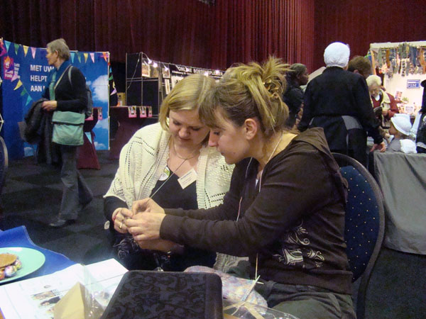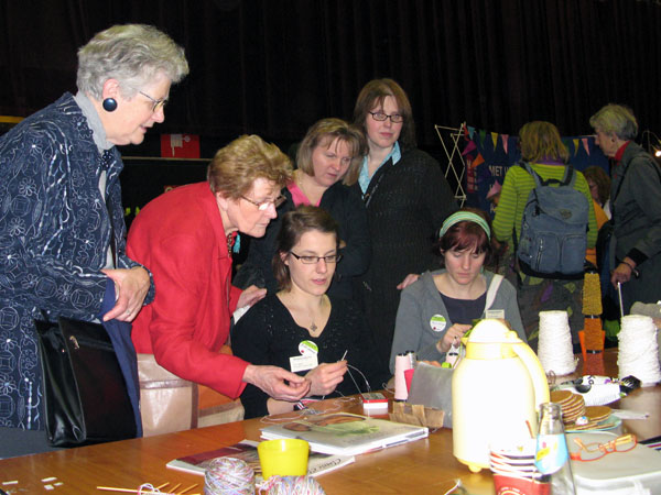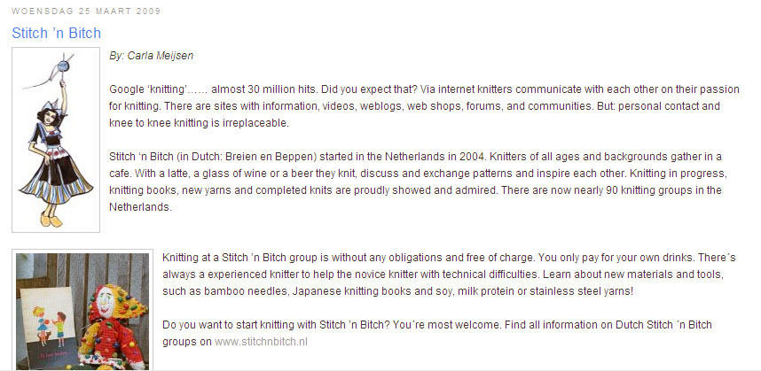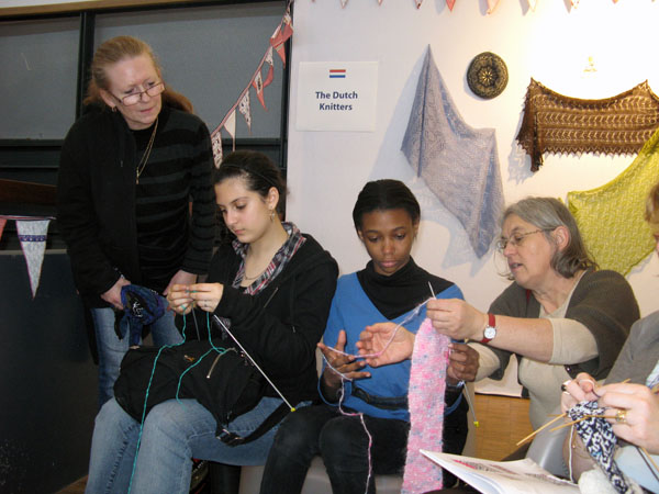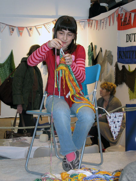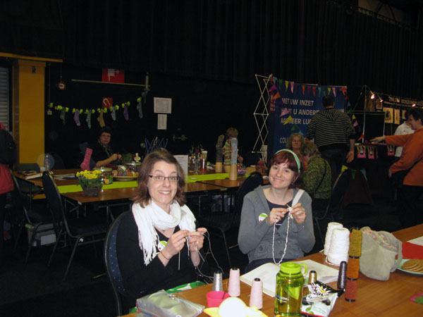 You can meet up with Stitch ‘n Bitch Tilburg regularly in the area right in front of the exposition. Members are helping out visitors with knitting Game Out, a knitted computer game. The Dutch Knitters will be present with a Dutch Knitting Café on the fifth of April. We will demonstrate a nice knitting technique while you enjoy a cup of coffee and of course you are invited to join in. So do come visit the exposition and join us for some stitching and bitching!