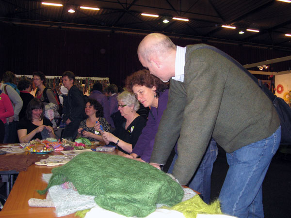 Je hebt ambacht en je hebt kunst. En veel wat daar een beetje tussenin zit. In de mode, in mijn ogen vaak ook een vorm met een zeer grote variatie tussen ambacht en kunst, wordt vaak breisel toegepast. De Françaises van de Parijse modeacademie fabriceerde op L’Auguille en Fête ter plekke een jurk waar de draagster met haar drie vriendinnen onderdak in vonden en waar ze trots de hele beurs mee overgingen. In het gebreide wereldje, een wollen peperkoekhuisje, vielen hun steekjes weg tegen de achtergrond.