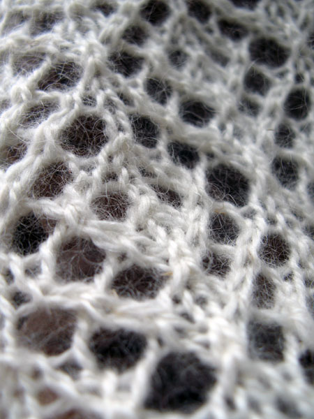 For us the exhibition contains lots of well-known objects. Désirée de Baar‘s knitted sink and the vaginas by Jimini Hignett, Dave Cole‘s video of an enormous American flag knitted by a bulldozer, the beautiful objects by Kelly Jenkins and Petra Vonk’s mysterious panels done by laser. Rosemarie Trockel’s Dutch looking tiles were of course The Dutch Knitters favourite. I immediately recognized the design elements and processes so well known by me from the days I studied Textile arts. The basis of this exposition, the expression of political and social issues, is very clearly visible. Anyone who wants to recognise more contexts follows the line pattern. Do remember to visit the Weblog regularly, where you can also read my contribution and can admire my first piece of knitting. Not an art object….. 😉