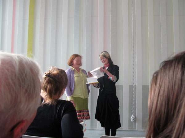 Tijdens de expositie Knitted Worlds in het pas verbouwde Audax Textielmuseum in Tilburg wordt het ambachtelijk breien tot echte kunst verheven. De opening, waarvoor ik uitgenodigd was door Suzan Russeler, was een groot succes. Kelly Jenkins, een kunstenares die zich graag uit met behulp van de breitechniek, hield na de directeur en Russeler een inspirende toespraak. De publicatie die speciaal voor de tentoonstelling was gemaakt, werd na afloop aan haar uitgereikt. De kaft bevat foto’s van breiwerk en teltekeningen die me deden denken aan mijn blog op Life ‘n Knitting. Complimenten voor Russeler, die middels het organiseren van Knitted Worlds aangeeft het fenomeen breien serieus te nemen door het een plaats te geven in een op dit gebied toonaangevend museum, ondersteund door een goed toegankelijk, maar toch diepgaand essay over de essentie van hedendaagse breien in kunst en samenleving.