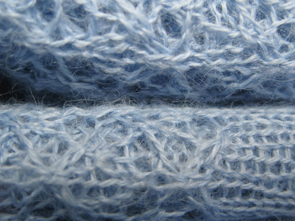 Finally, it is done. The light blue Estonian alpaca shawl on needles 2,25 mm. A sight of relief when the last stitch fell from the needle and a scream of joy when I saw it turned out exactly as I hoped it to be. It was a big job knitting, but it was só worth it.