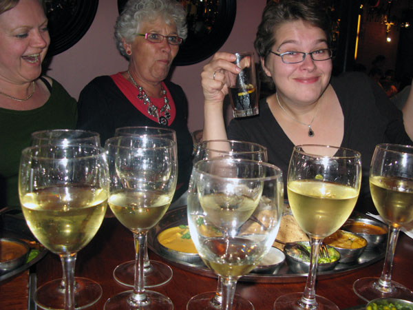 Na een bezoek aan het Buckingham Palace en thee met traditioneel gebak in de tuin van de Queen, volgde een etentje bij Prezzo, ons favoriete Italiaanse restaurant bij Travelgar Square. Heerlijk, crabcakes in saffraansaus. Op de weg naar de metro vielen we met ons neus in de boter, het was de avond van het Thames Festival, waarbij mensen verkleed als waterwezens met veel getrommel en lichtjes de kwade geesten uit de Thames verdrijven.
