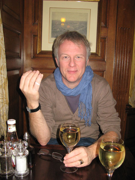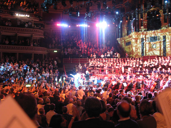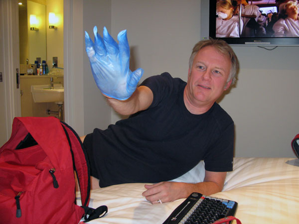 But apparently one evil spirit had slipped through, because the next day Jan fell over a big orange beacon, which caused his little finger to make an almost 90 degree bend. Panic of course, but I had him in a taxi within a minute on the way to St. Thomas Hospital. Nurse Cath put the little finger neatly back into its joint (fortunately it wasn’t broken!). Jan had to return two times for hand therapy and a nice blue splint. Emergency medical care is very good and free of charge in the UK, so after this exciting adventure we toasted to the fairly happy ending during a nice dinner at a restaurant with a view of Downing Street. A good spirit of the Thames provided us with the two last cards for the Last Night of the Proms in the Royal Albert Hall with Dame Edna day later. “Hello possums!”