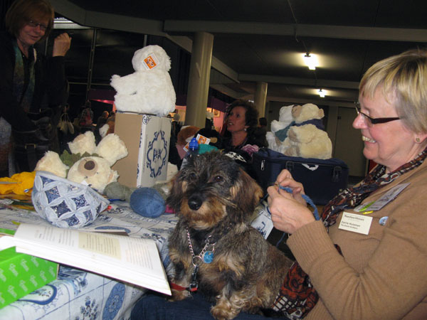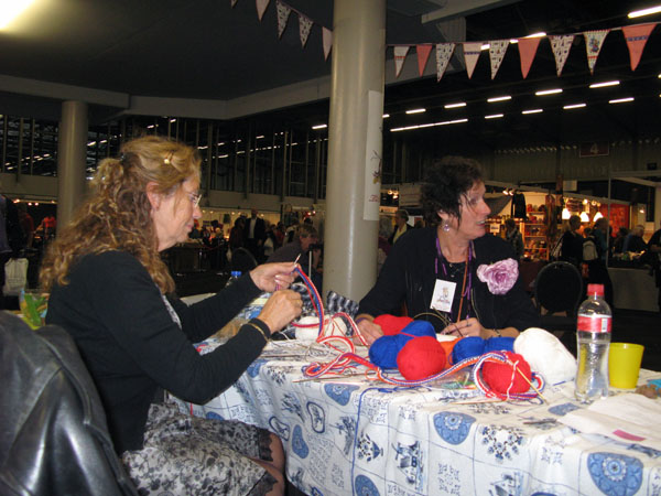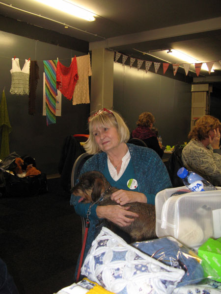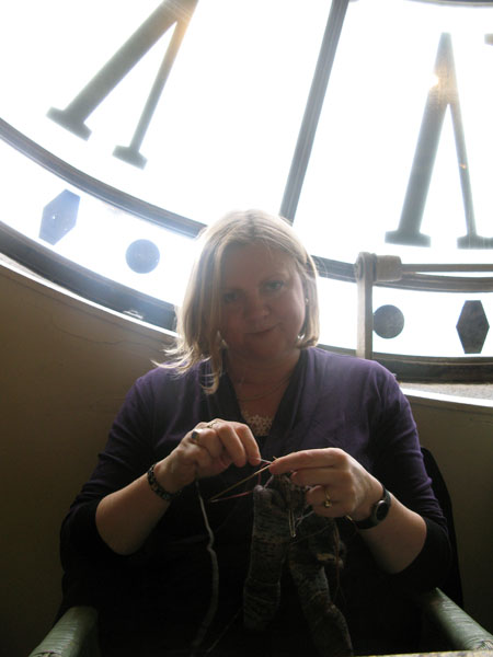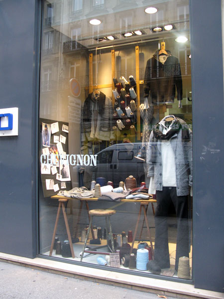 Hoewel we niet op zoek waren naar brei-gerelateerde zaken, werden we op iedere hoek van de straat geconfronteerd met het fenomeen breien. Etalages puilden uit van de breisels en vaak had ook het etalagemateriaal met breien te maken. Op het hoofd van menige française prijkte een gebreide baret. In Arts et Metiers zagen we twee lieve poedeltjes, een moedertje van 23 jaar oud (!) en haar dochter. Ze hielden hun ruggetjes warm terwijl ze uitgelaten werden door hun vrouwtje, de moederpoedel met een rood gebreid dekje. En ik zat op menig terras (ja, het weer werkte de meeste tijd goed mee) en andere bijzondere plekjes lekker een toertje te breien aan mijn sokken.
