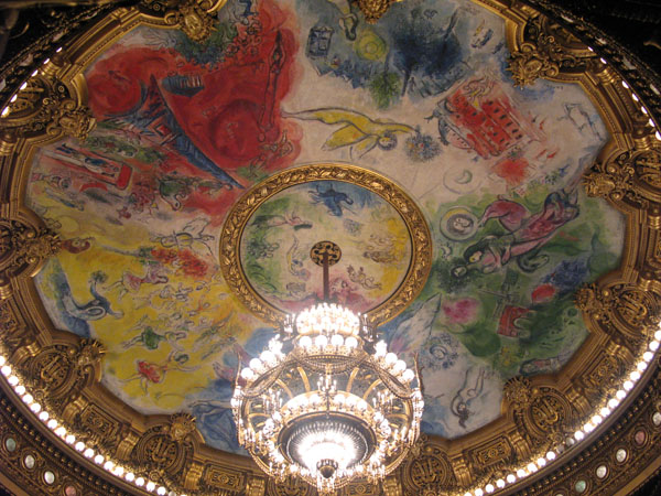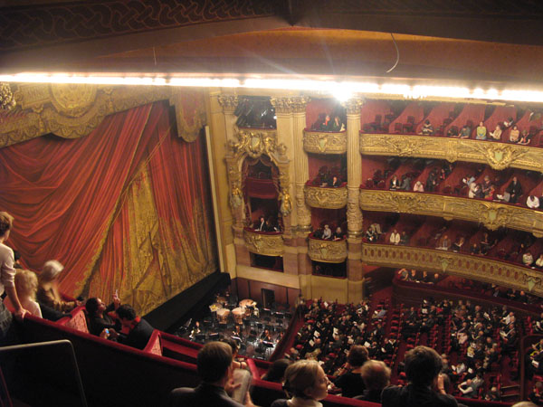 Thanks to Yvonnep’s enthusiasm for ballet we thought it was a good idea to go to the opening night of Joyaux of Balanchine in the Opéra Garnier. On the day we went we could only get the last and very cheap tickets for the highest loges, but to our surprise that appeared to be a little room for two almost on the roof of the building with two nice chairs and a reasonable good view of the stage. We had such a good time, hanging over the balony together, enjoying the music and a great show. It was an experience to see the highly decorated building itself, but the show was beyond our expectations, as Christian Lacroix designed all the stage costumes.