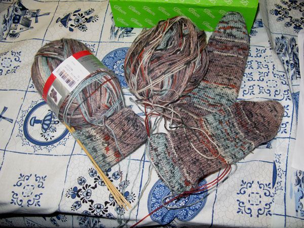 Japan is obviously hot in Paris, as at Uniqlo, a new trendy Japanese shop, was crowded. Especially the HeatTech shirt are trend, so I bought one too, a bright green one. At Junkudo, the Japanese bookstore, I bought a nice sock book with clear charts of how to knit the heels and toes. Unfortunately Brentano, the bookstore that sold so many knitting books and hosted a Stitch ‘n Bitch on Saterday morning, is broke. No more knitting there……