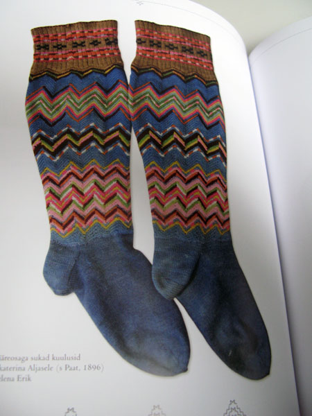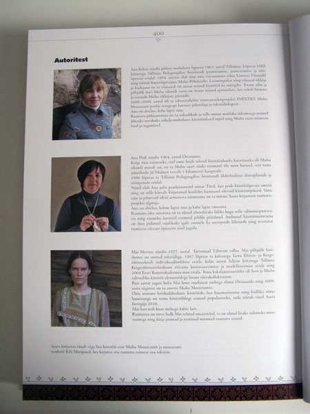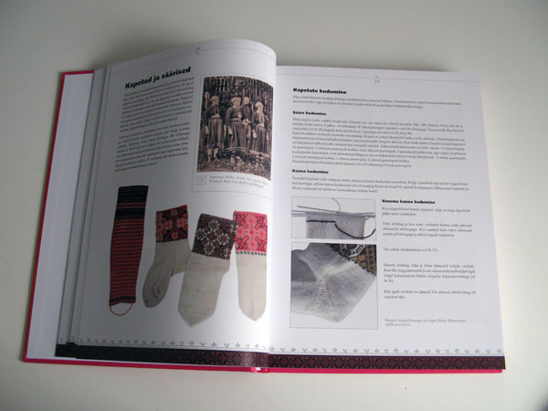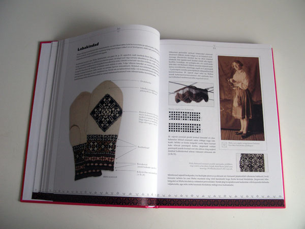 Nog een prachtboek uit Estland, over het textiele handwerk op het eiland Muhu, waar ik ongelooflijk blij mee ben. Het bijna drie kilo wegende lijvige werk van 400 pagina´s werd natuurlijk direct besteld door De Afstap en ging afgelopen donderdag vanzelfsprekend meteen mee naar huis met mij. Ik keek er al vanaf juni dit jaar naar uit dus een beetje sjouwen had ik daar wel voor over. Ach, al had ik ´m tussen mijn tanden mee moeten sleuren….. méé moest ´ie. Want het is zo’n geweldig boek, minstens een derde gaat over de tradtionele breisels, veelal wanten, handschoenen, gruwelijk mooie kousen, truien, mutsen enz. Maar ook alles over hoe de geborduurde schoenen worden gemaakt, de borduursels, het bandweven, gehaakte randen, traditionele kleding enz. Een schatkist tjokvol prachtige sfeervolle foto’s, patronen, tekeningen. Door het vele visuele materiaal is het feit dat het boek in het Ests is een minder groot bezwaar dan je zou verwachten. Ik geef jullie graag een voorproefje van dit boek, maar als je er iets uit wilt breien, dan kan je ´m bij De Afstap kopen voor 74,95 euro. Het is iedere euro waard. Dik!
