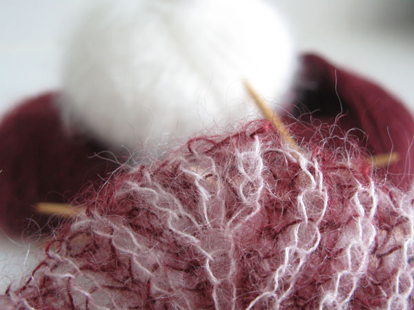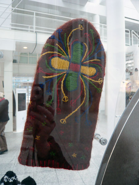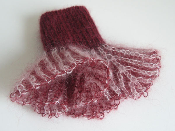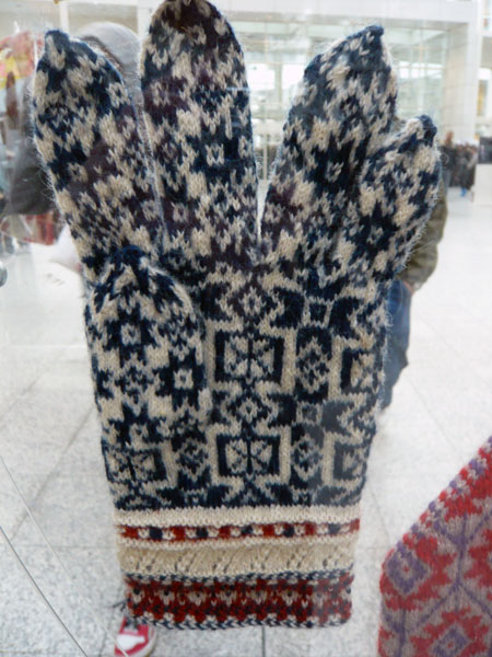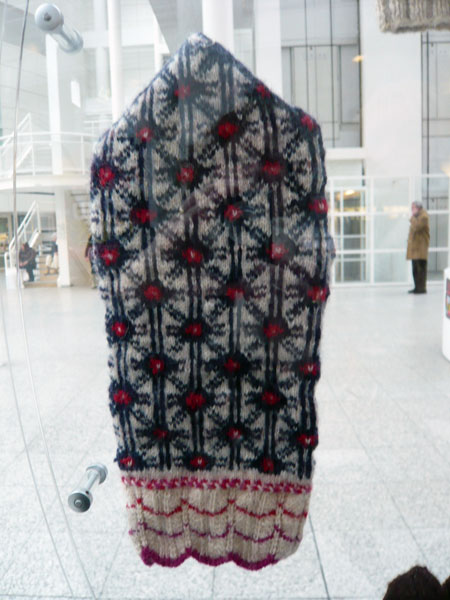 Soon scarves, shawls, socks and slippers rolled of the needles. But I didn’t expect that such an old-fashioned slipper from an old French knitting magazine would become such a hit…… And the fact that sewing and knitting demand different finishing techniques, that was something one of our students hadn’t realised. She just cut the loose ends at the very edge of the work with a firm snip.