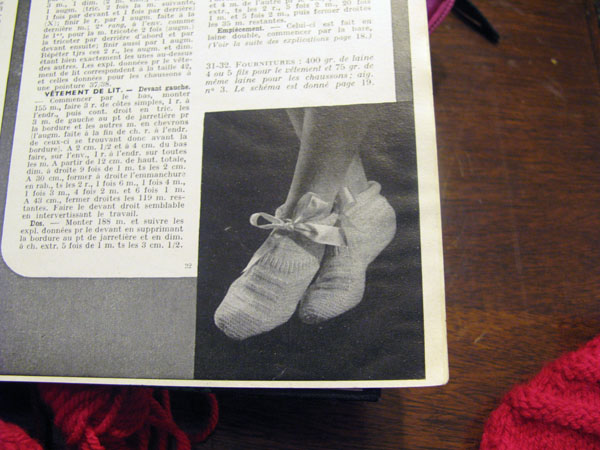 Er rolden al snel shawls, omslagdoeken, sokken en pantoffels van de pennen. Maar ik had niet verwacht dat de ouderwetse pantoffel uit een oud Frans breiboekje zo’n hit zou worden….. En dat naaien en breien verschillende manieren van afhechten vereisen, dan was iets wat één van de studentes niet bedacht had. Ze knipte beide af te werken draadjes gewoon op het randje van het breiwerk met een ferme knip af.