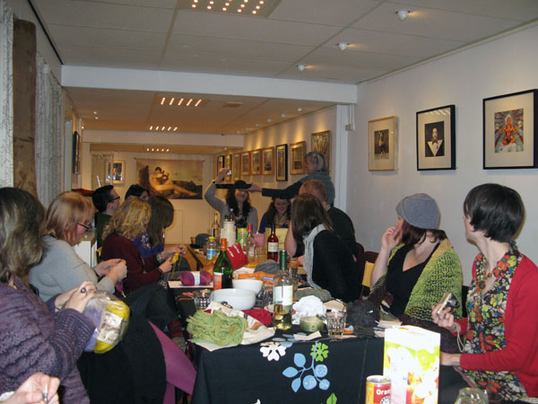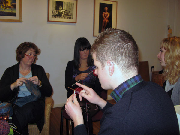 A short while ago I received an email that 30 knitters of the Knottingham Trent Knit Society from Nottingham would spent four days in Amsterdam and they asked me if I knew of some nice knitting related activities. Unfortunately there are no nice exhibitions or anything like that at the moment but De Afstap gladly opens its door for them. However, they also wanted to knit along with the Amsterdam knitters….. Stephen who was abroad at that moment, answered my mail within five minutes and from his holiday location organised a knitting evening in the ABC Treehouse right in the centre of Amsterdam. Stephen, Nancy, Cassandra and all others who brought liquorice, sugar hearts and other nice snacks, this was fantastic!