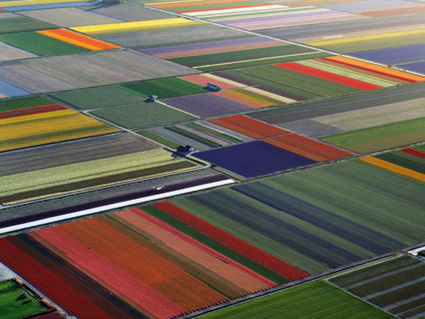 Het mooiste uitzicht op de bollenvelden heb je bij Ribbels in Leiden. Mits je als doorgewinterde breier liever een bollenveld van wol dan van tulpen ziet. Gevolg van zes uur lang naar de wand van kleur kijken is dat je niet met lege handen weggaat. Ook wij niet, want Noro Silk Garden sokkenwol vraagt erom tot een mooi Brioche-dasje te worden omgetoverd.