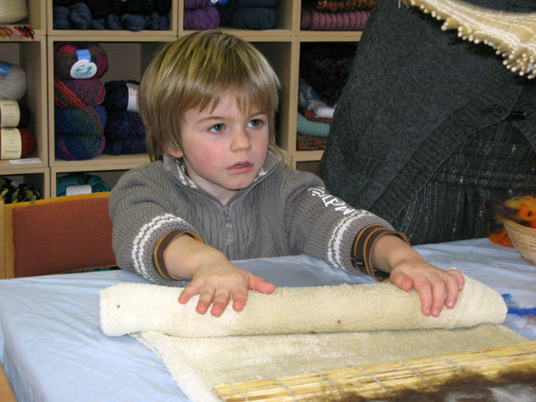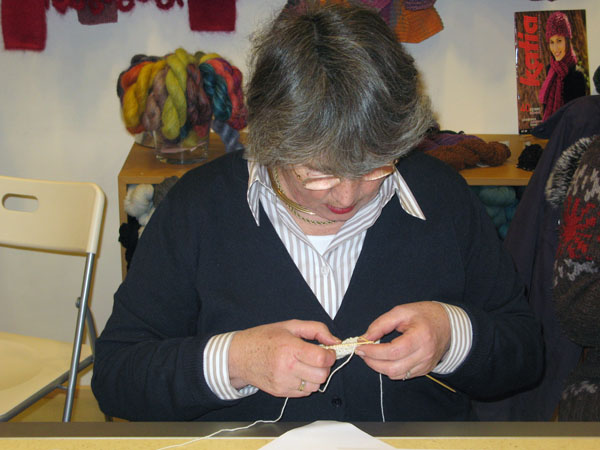 Although knitting and finishing a traditional Estonian Lace shawl is tricky, all students managed to finish the mini shawl without too many problems. Adrie surprised us with her remarks peppered with dry humour and Manuela and Jit were roaring with laughter when they compared their little shawls and saw the difference in size. “But I am much bigger than you are”, Jit said and then she doubled over with laughter.