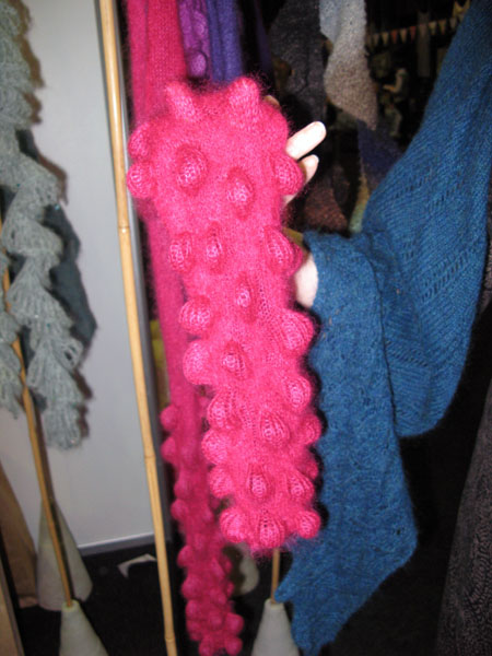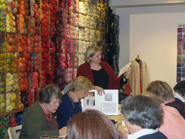In Antwerpen sliepen we in een hotel met een oneindige spiegel in de walkin closet in de Joodse wijk waar de traditioneel geklede Joodse mannen met pijpenkrullen en bontmutsen door de wijk lopen. We gaven les bij Lea in haar gezellige winkel Lana. Een leuke groep Belgische dames sloeg zich kranig door de theorie en praktijk van het breien en de constructie van traditionele Estlandse shawls heen. Lea zorgde voor een uitgebreide lunch in haar kortjes-bij-dichies-keuken. Wie trouwens nog mooi wollen kantgaren zoekt voor haar Estlandse shawl kan terecht bij De Afstap, waar sinds kort Mora Redgarn in wolwit en diverse kleuren te koop is.