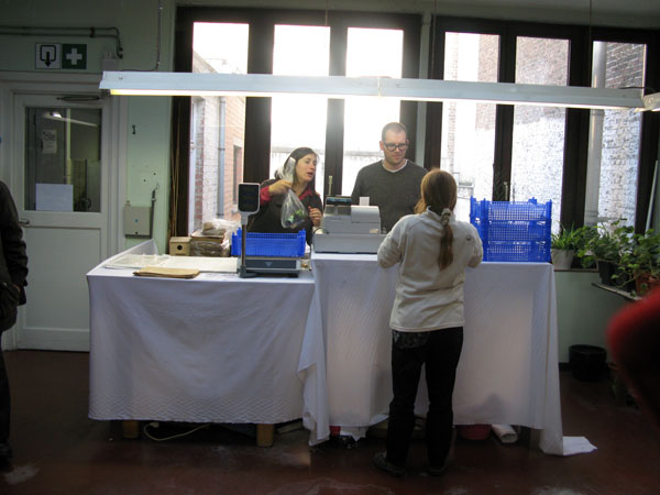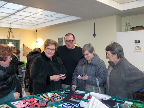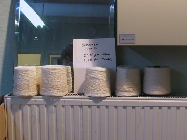 In the weekend of 30/31 January the Belgian boys Bart & Francis opened their door, literally. A group of Amsterdam knitters as well as we were curious after their special yarns and even more their extraordinary building in Kortrijk. The boys provided us with many nice bargains, coffee and dreupeltje (a small drop of liquor) in the coffee. Now we know that baked linnen really smells like burnt fibres. You can overdo it with the burning test, as with exterminating mice in this large building.