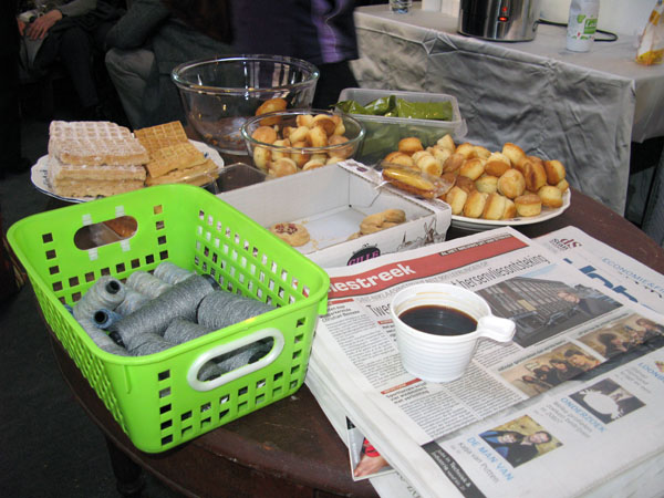 Second Events’ Janet Vermist, thank you for the fantastic crafts party you organised for us. Dear knitting friends that helped us in the Dutch Knitting Café (Brent, Norwegian Vibeke and Australian Saskia – considered being hostess in the Dutch Knitting Café as the ultimate way to integrate – Corry de B, Corry de H, Arja, Nelleke , Marianne, Jantine, Jonna, Brie, TTitia and all that join in), patiently explaining things, making the café a cosy place to be, demonstrating, answering questions, dragging stuff, decorating and clearing out the café, thank you and see you again in Rotterdam next fall!