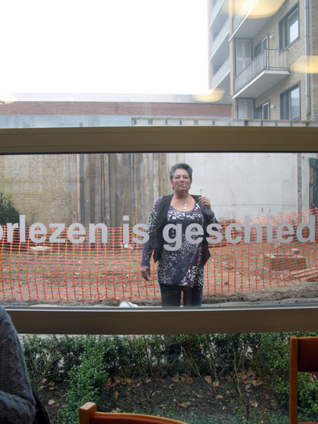 In Antwerp we stayed in a hotel in the Jewish quarter with an enormous mirror in the walk-in closet in our room. The Jewish men walked in traditional costume with corkscrew curls and fur hats through this area. We gave a class at Lea’s in her cosy shop Lana. A cheerful group of Belgian ladies got through the theory and practice of knitting traditional Estonian lace shawls bravely. Lea provided us with an extensive lunch in her sit-close-together kitchen. By the way, anyone who is looking for a nice woollen lace yarn for her Estonian lace shawl can find this at De Afstap, were for some time now Mora Redgarn is in stock in off-white and several colours.