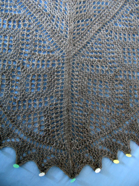 We ontdekten dat als Jans helemaal niet van plan is om Estlandse shawls te gaan breien, dat dit voldongen feit haar de ideale persoon maakt om tijdens de pyamaparty onze wijntjes in te tuten. ‘s Nachts snurkt ze er lekker op los, maar roommate Ingeborn schijnt dat juist een lekker vertrouwd geluidje te vinden en verheugt zich er al op. Met al dat gelach en gekakel leek mijn huis wel een kippenhok. De oude poezen Coquette en Anti waren blij rustig boven te zitten. Ondertussen viel mijn nieuwe boek over de Orenburg breitraditie op de mat. Want als we de Estlandse breitradities tot in de puntjes onderzocht hebben, wacht het volgende project,…… Orenburg. Als je breit, kom je nog eens ergens.