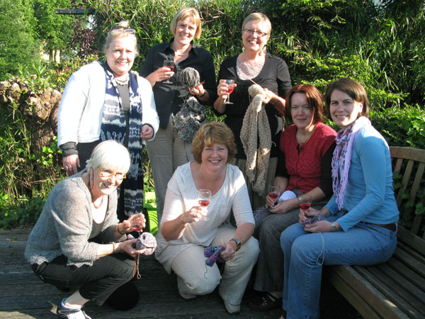 Yesterday we had a afternoon at my place with the participants to prepare for the trip to Estonia. After tea with sweets and cookies Hil and I told them everything about the Estonian knitting world. We showed our books, shawls and samples untill especially the knitters with only little lace knitting experience dropped out. After the group photo in the garden on the quay at the waterfront with knittings and a glass of Prosecco in our hands, we went to town to our regular table in the Winkel van Sinkel to eat something. Almost all participants were there. A group of knitting friends with a lot of variety and different backgrounds that will have a marvelous time in Estonia.