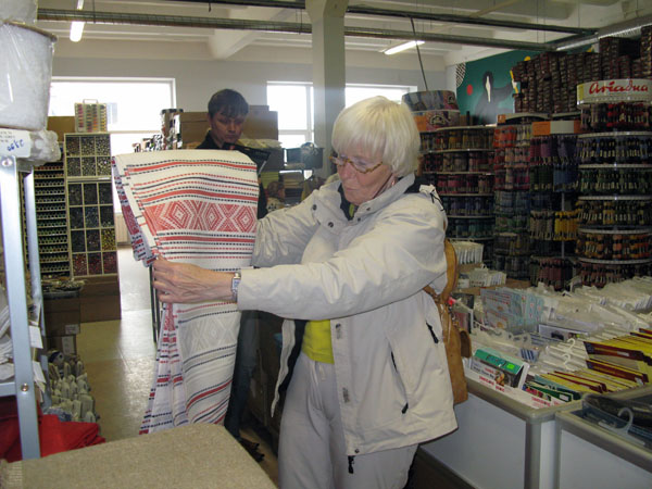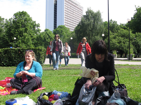 This workshop, the contents as well as the fact that it was taught by the friendly master knitters of Haapsalu, was the highlight of this trip for me. I cherish the memory of Aime and Siiri wearing our first real Haapsalu shawls around their shoulders standing in front of the quilt with knitting samples. Later on I’ll tell you more about the wonderful tour they gave us after lunch.