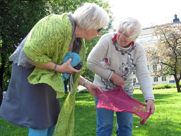 On the front picture of the map of Haapsalu part of the boulevard is surrounded by Estonian lace knitting in the Greta Garbo pattern. This indicates that it is really valued that the most beautiful Estonian lace shawls come from this little town. It was here that Linda Elgas taught Aime Edasi how to knit these shawls in the traditional way. Together with Siiri Reimann Aime wrote Haapsalu Sall (English version Haapsalu Shawl), a book filled with information, photos and charts. Being taught by these two master knitters in a workshop is the most fantastic thing that can happen to a serious lace knitter.