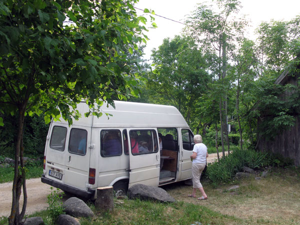 But sometimes the Kihnu taxi doesn’t move anymorer, so you have to walk a bit or change to a more luxurious model, in this case a rusty old bus, again with the same wooden seats. Maybe you can better drive in the side-car of the motor of you master, leaning over in the curves of the road with your ears in the wind.