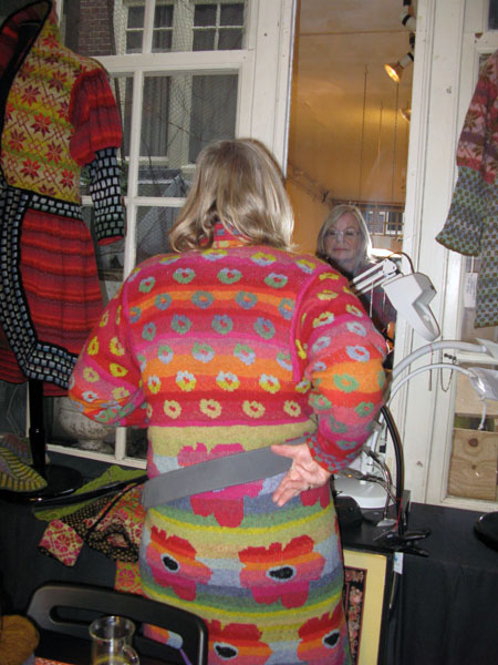 This discussion brings me to one of my favourite subjects, discrimination on the basis of age and gender. However, my attention goes to women, in the age of approximately 40-50, who despite their vast number play second fiddle in the knitting world – and in society – more than to men. I stand up for this group, although it hardly occurs to me that I’m part of it myself. After so many media contacts the past couple of years it drives me crazy that journalists keep asking the same question over and over again: “Are there any young girls who knit (for then knitting must be trendy and hip)’ and of course the key question……. ‘ are there any men who knit?’ When I tell them about all these marvelous, experienced, interesting and very enthusiastic women who knit, they are often completely put off. So the key points are clearly all the aspects that have nothing to do with knitting but everything with crazy, young and out of the ordinary. Strangely enough knitting has to be made more fashionable by the exceptional man who knits. The status and respect for a hobby of so very many is clearly determined by the irrelevant uniqueness of one person.