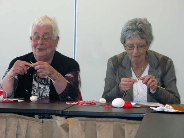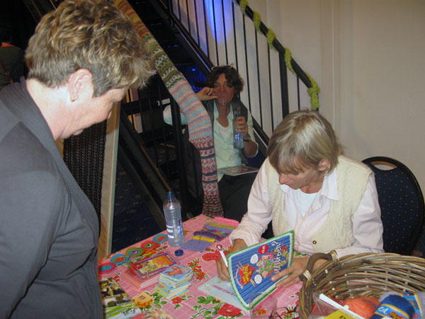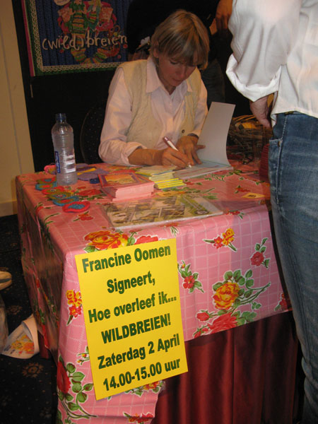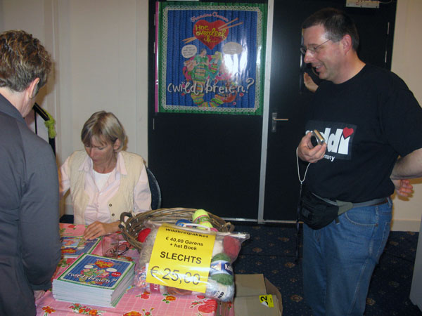 En dan die opmerkingen op de Handwerkbeurs. Zit je daar met een groep breiers (man, vrouw, jong, oud en van alles wat die de bijzonderste en prachtigste dingen breien), komt er een vrouw van rond de vijftig die volledig in katzwijm valt voor één van onze breimannen…… “Oh, wat móói hè, een breiende man, die kan vast veel beter breien dan jullie allemaal bij elkaar……”, overigens zonder het breiwerk van de man in kwestie een blik waardig te gunnen.