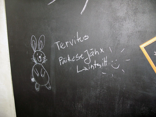 What a good time we had in Estonia! We had delicious meals, lots of Estonian (with brick oven toilet), Medieval (which a matching toilet), Italian, supermarket-at-the-hotel room and four-star diners etc. Always for just a small amount of money and always delicious! Delicious was also the Indonesian rice table Jans’ friend Aty cooked for us for the after party at Jans’ place. Jans also made sure the toilet was well disinfected, which resulted in some big bleach stains in her pants. Well no problem, with a black marker this problem was solved in no time.