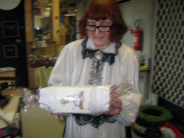 And then all that stash, books, knitwear etc…… Hil became quite desperate when we tried to stuff it in the suitcases. So why not carry it on your head. Also terrible was our shopping. The photos speak for themselves… we’re ashamed. Really.