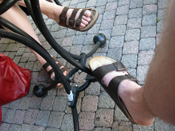 We don’t care much about the touristic part of Montmartre, but the ‘real’ Montmartre is a wonderful place to have a stroll through. This time we had an aim, namely finding the places where scenes of the film Amélie were filmed. There isn’t a basket with hazelnuts anymore at the grocery shop of Ali, but at the Deux Moulins nothing much changed except for the fact that the crème brulée now is called Amélie. It was so nice on the smallest terrace in town, where Jan and I toasted our wine glasses on the next fiveteen years!