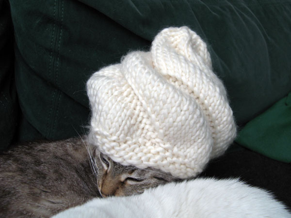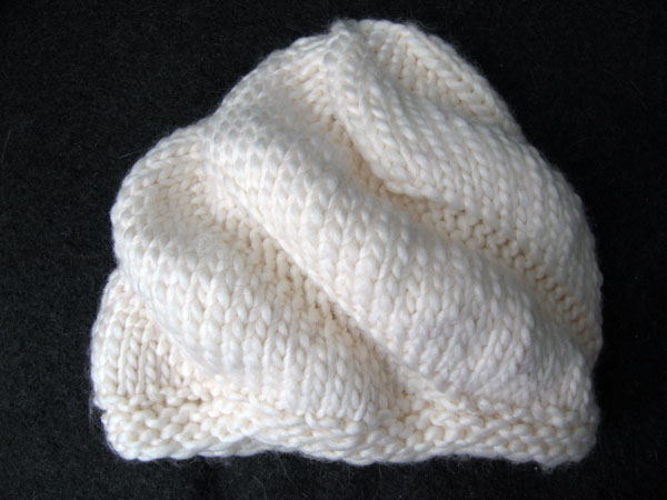 Gelukkig is veel van de kennis van moeder en dochter vastgelegd in diverse boeken. In Knitting without Tears vind je het patroon van de Snail Hat (ook Dairy Queen Hat genaamd). Simpel te breien met lekker dikke wol is dit project binnen een avondje voltooid. Maar het effect is gewéldig! Ik breide de muts in roomwitte Nordic van Katia, zodat het net een toef slagroom lijkt.