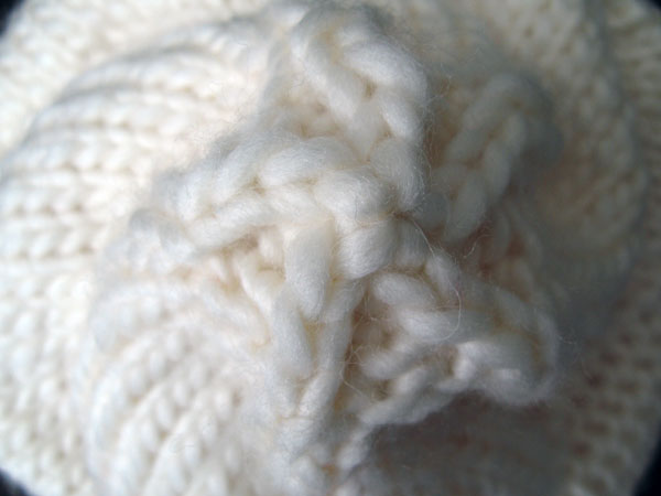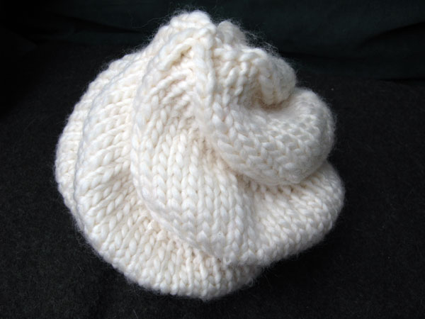 Fortunately a lot of the knowledge of mother and daugther is registrated in several books. In Knitting without Tears you find the pattern of the Snail Hat (also called the Dairy Queen Hat). Simple to knit with big wool this project can be completed in only one evening. But the effect is marvellous! I knitted the hat in wool white Nordic made by Katia, so it resembles a pile of whipped cream.